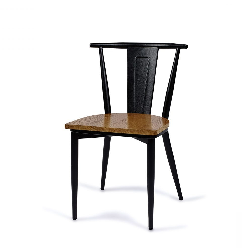 Silla Alabama Acero Negro Asiento Madera Maciza