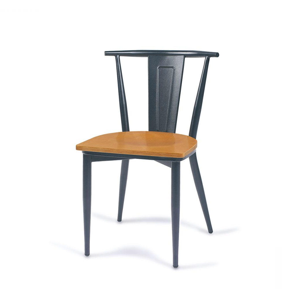 Silla Alabama Acero Grafito Asiento Madera Laminada