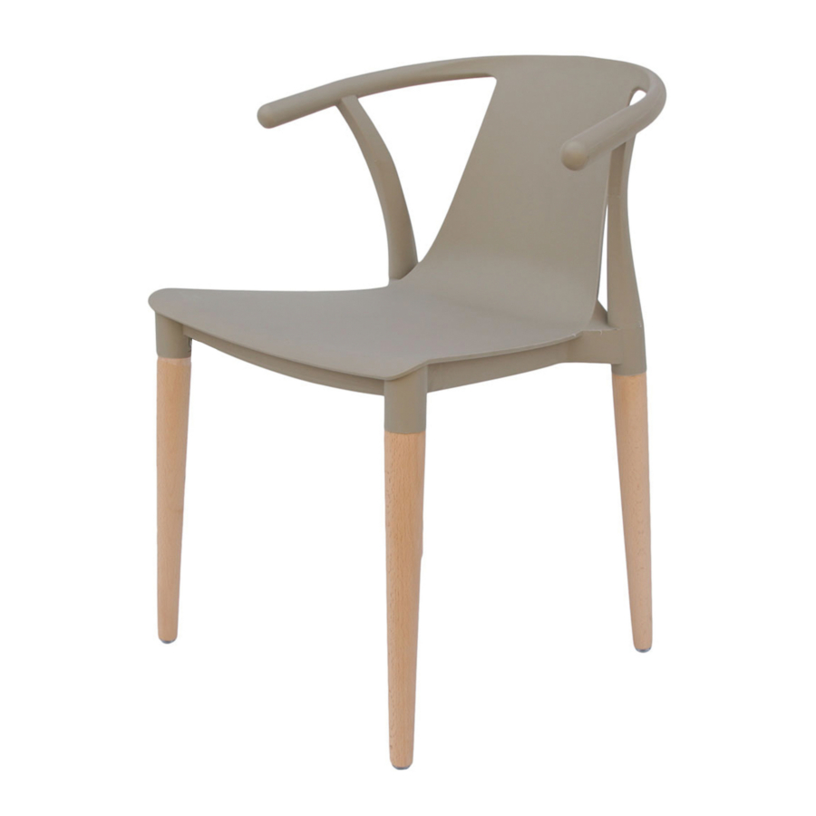Silla de Diseño estilo Nórdico tipo Wishbone, en poliester color Beige y pies en madera de haya.