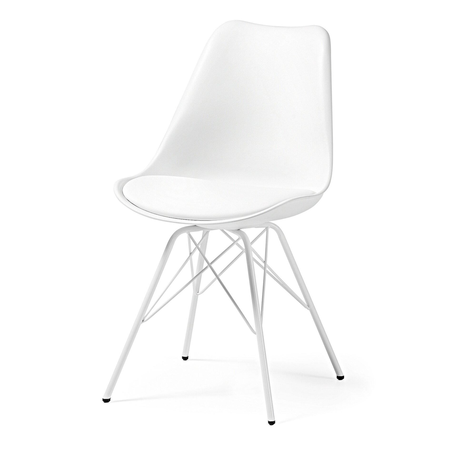 Silla Diseño Alf Blanca. Carcasa Polipropileno & Asiento Tapizado. Pie metálico
