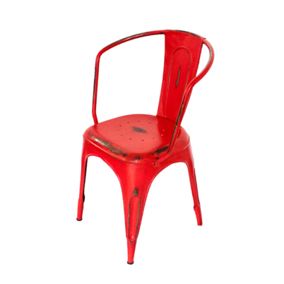 Sillón Retro de Estética Vintage color Rojo Desgastado / Envejecido. Réplica Tolix.